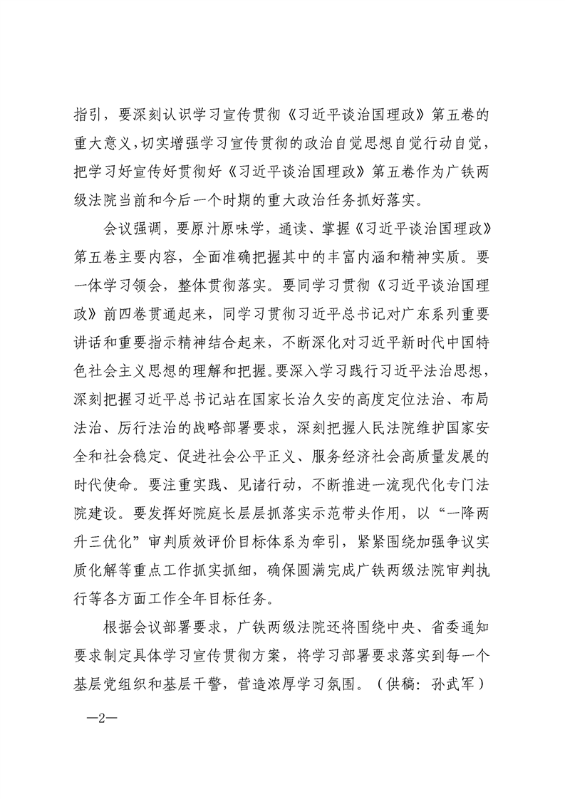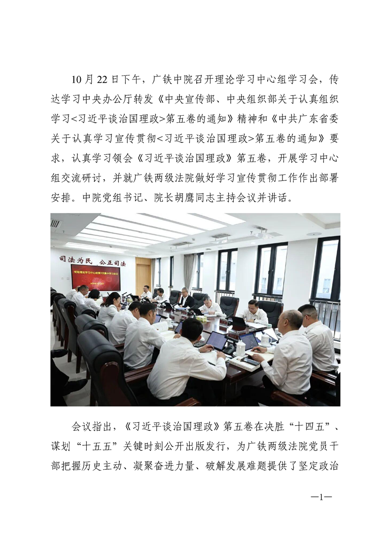 广铁中院组织学习贯彻《习近平谈治国理政》第五卷
