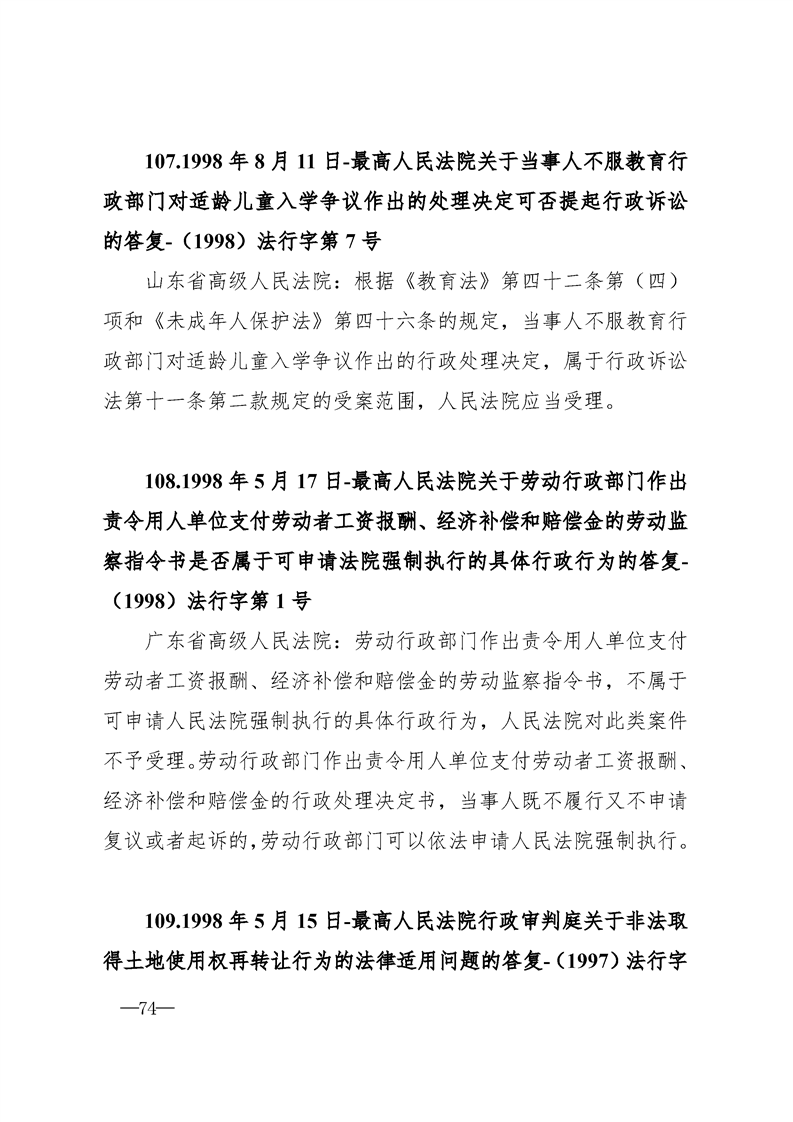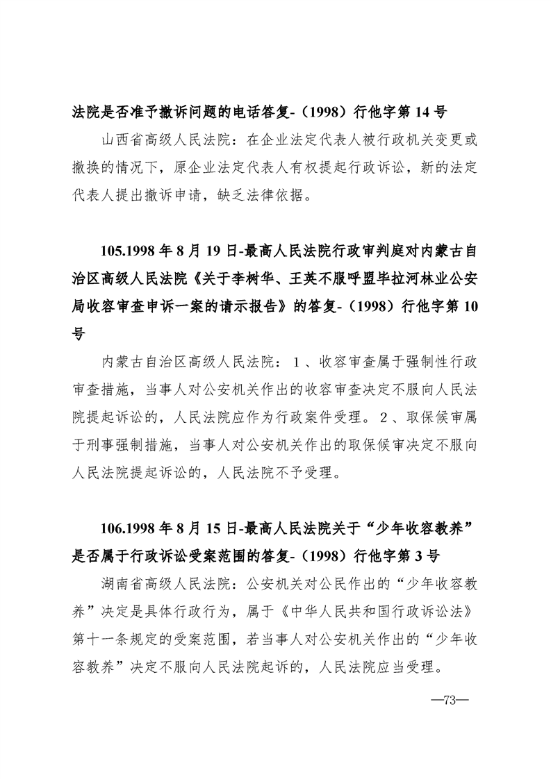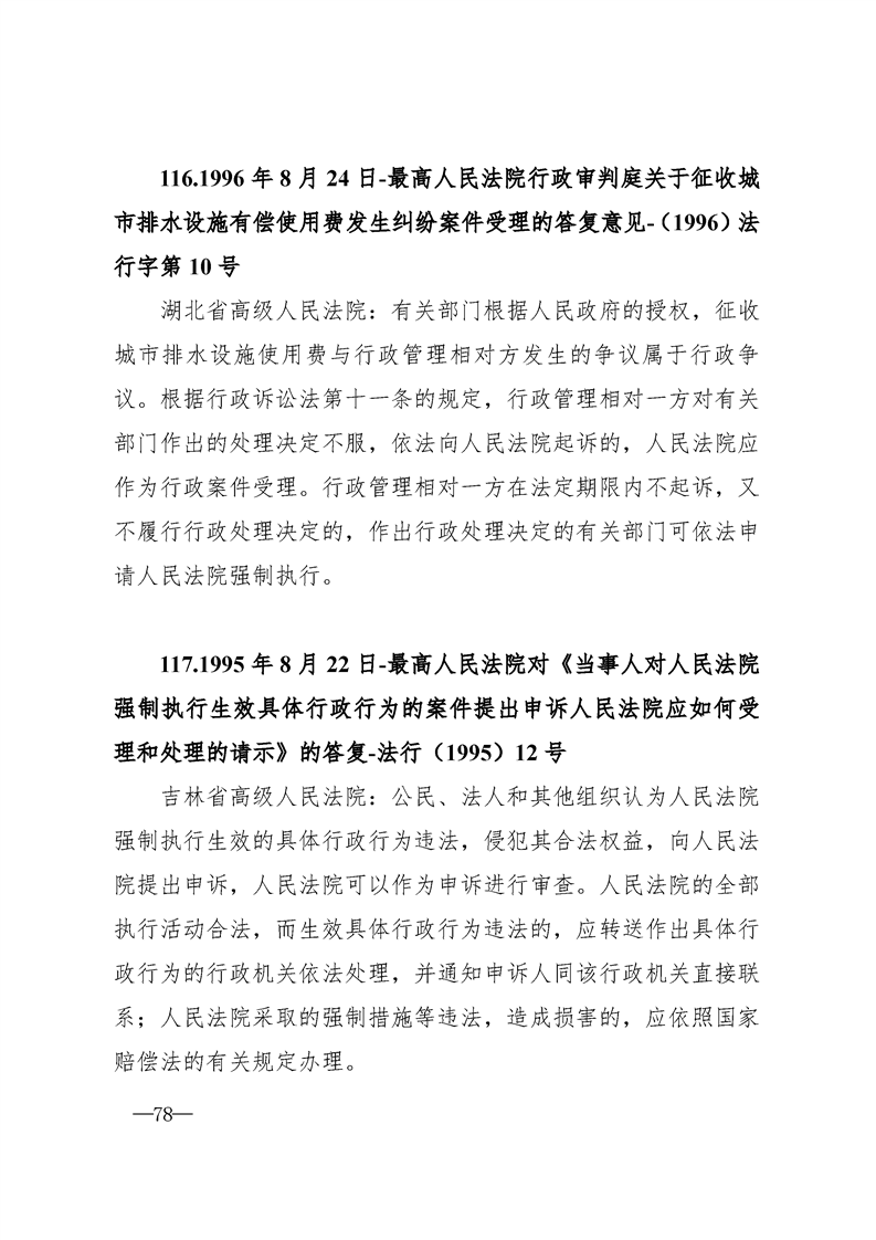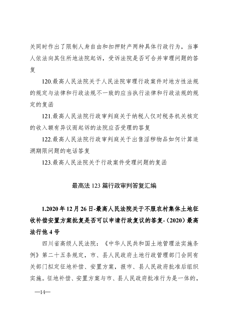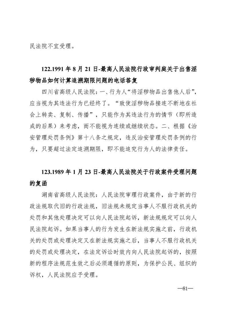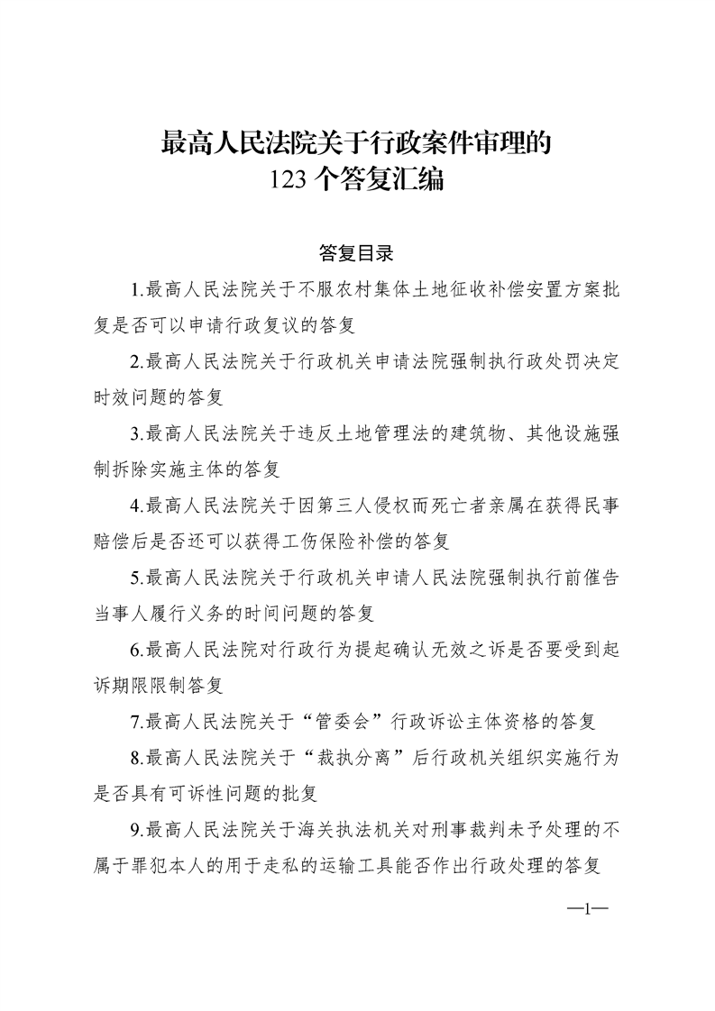 最高人民法院关于行政案件审理的123个答复汇编