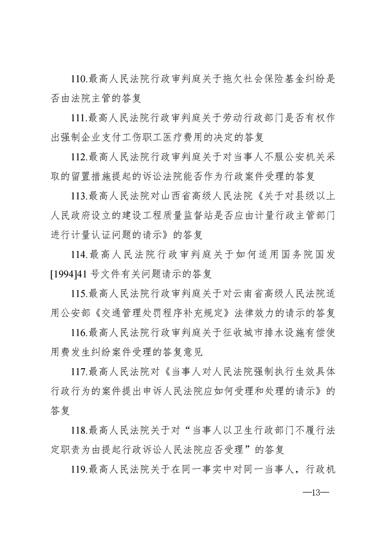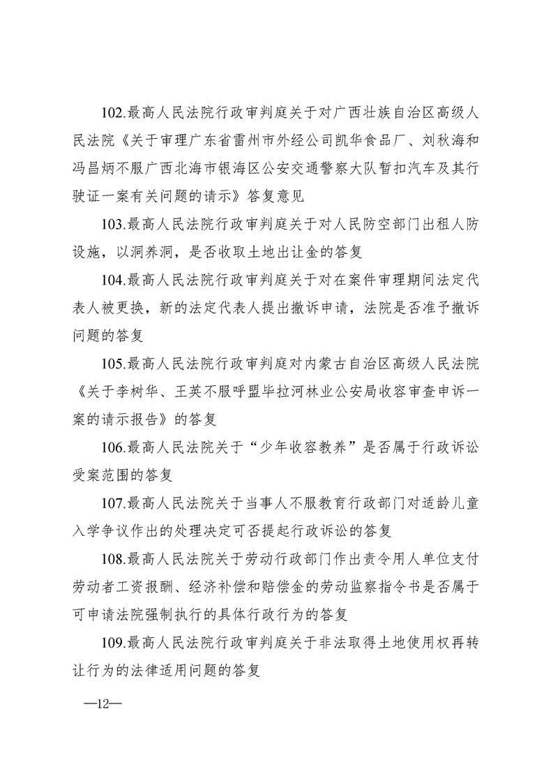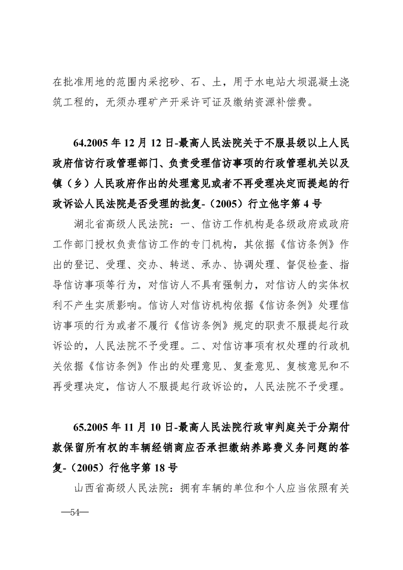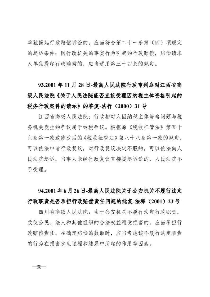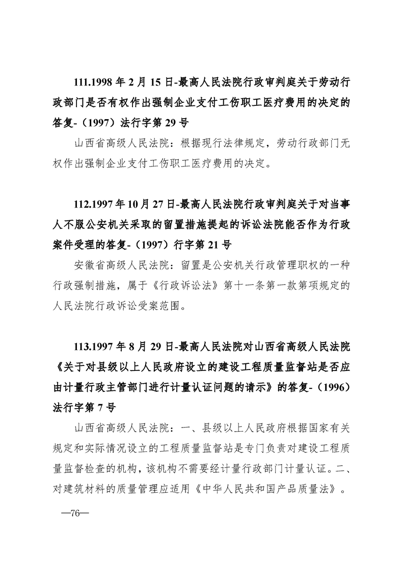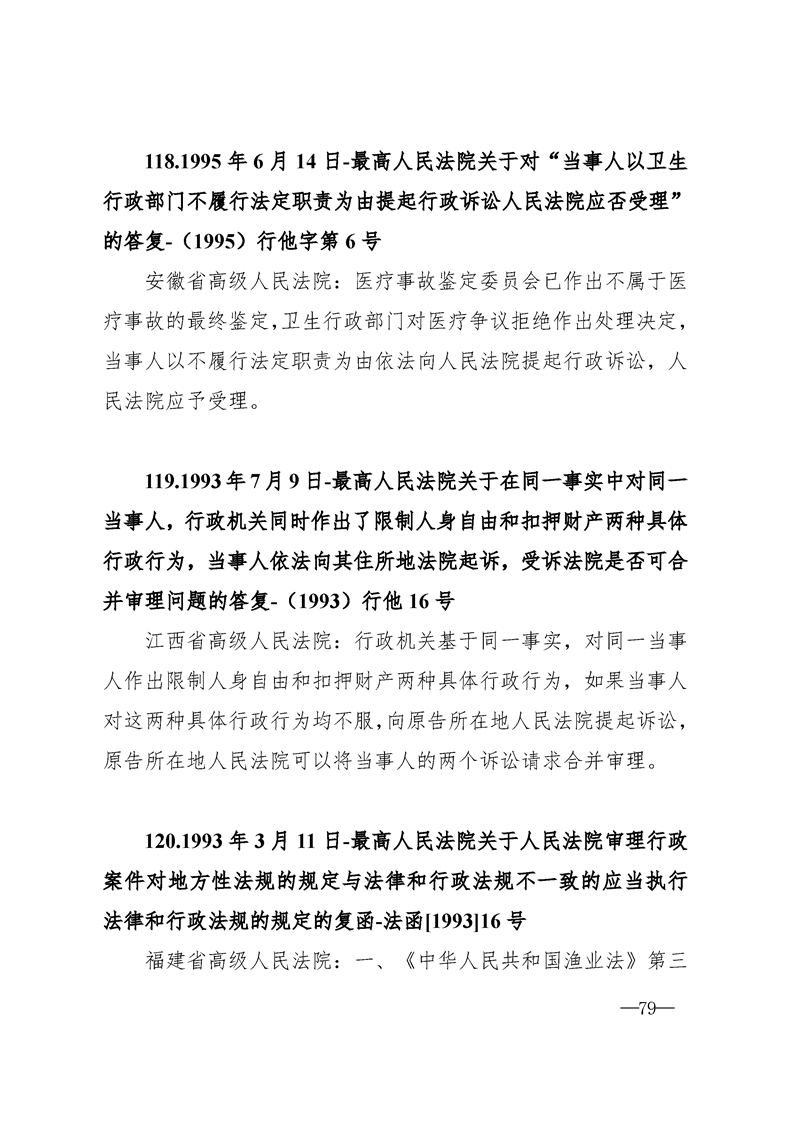 最高人民法院关于行政案件审理的123个答复汇编