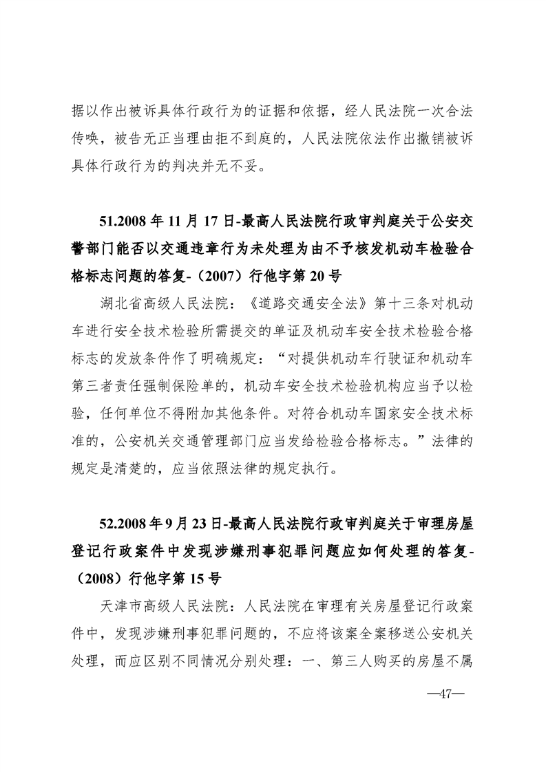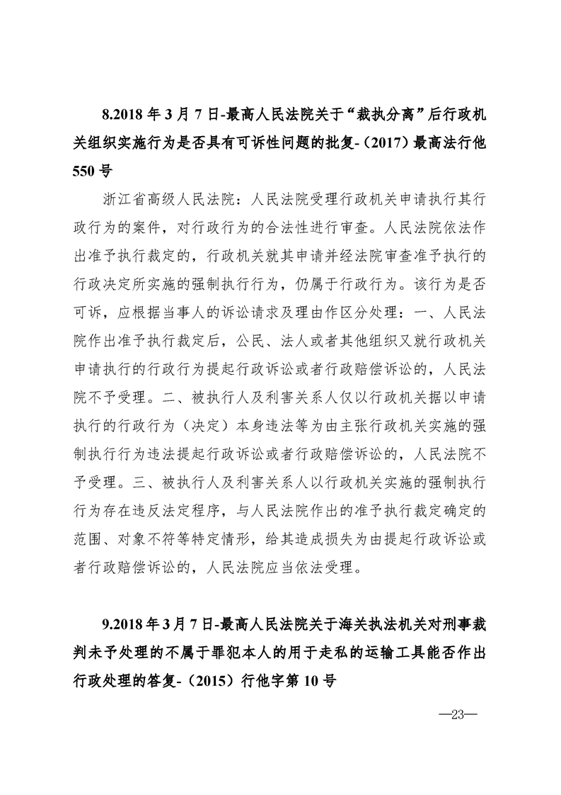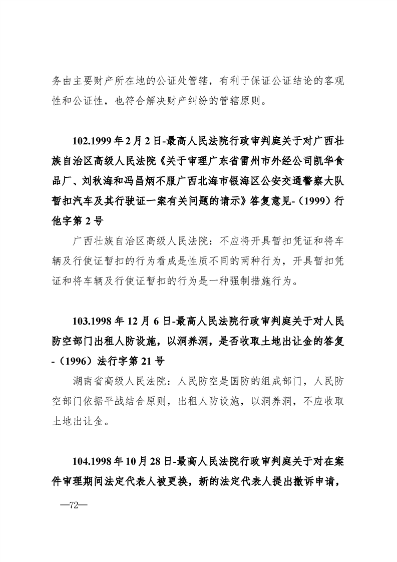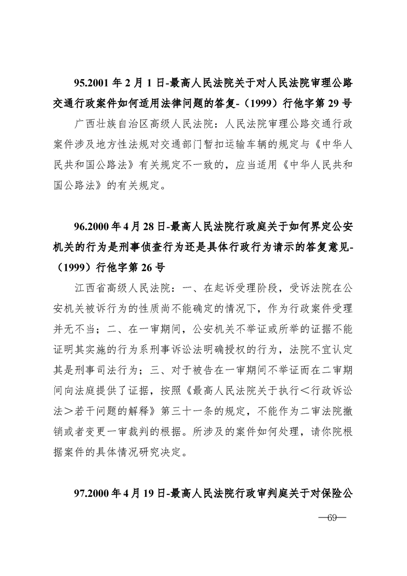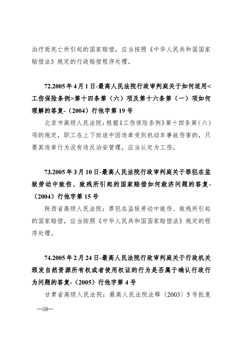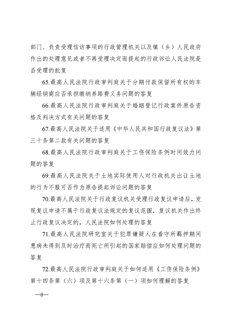 最高人民法院关于行政案件审理的123个答复汇编