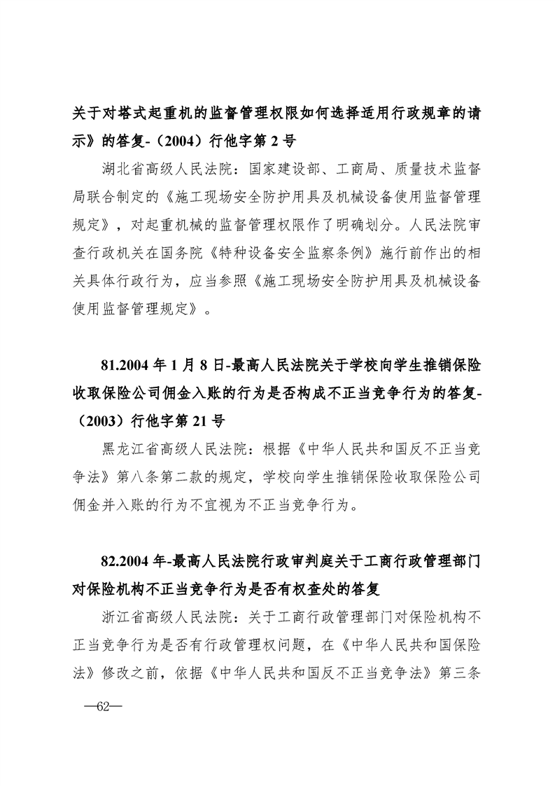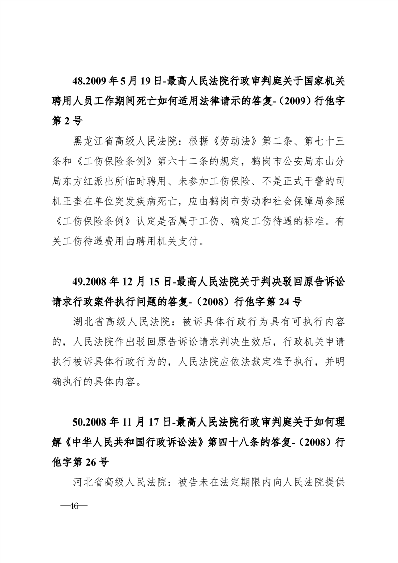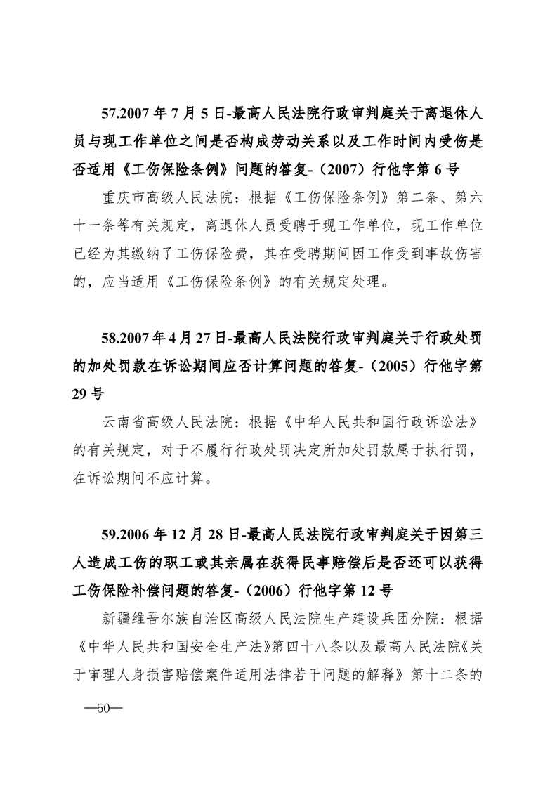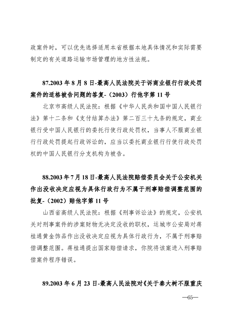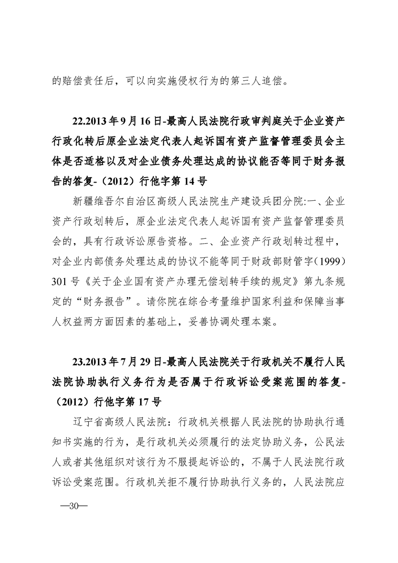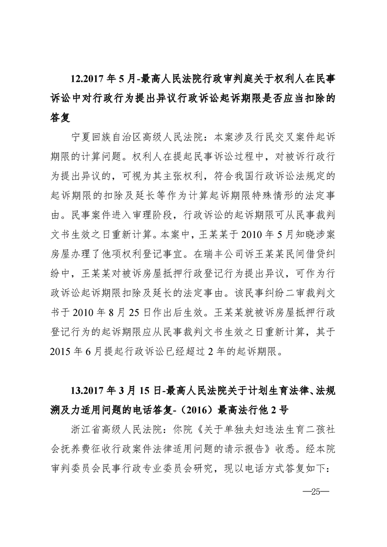 最高人民法院关于行政案件审理的123个答复汇编