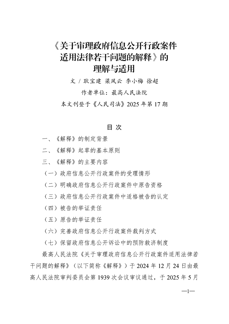 耿宝建 梁凤云 李小梅 徐超 《关于审理政府信息公开行政案件适用法律若干问题的解释》的理解与适用