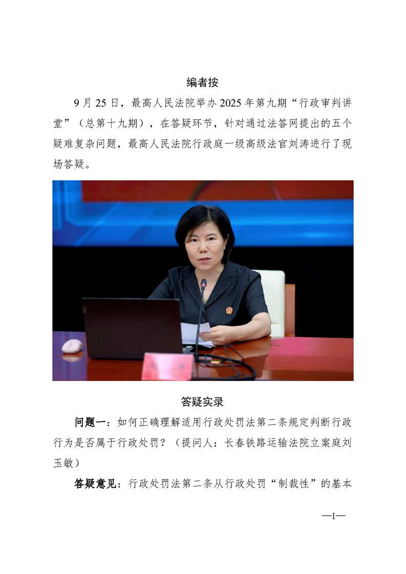 最高人民法院“行政审判讲堂”2025年第九期答疑实录