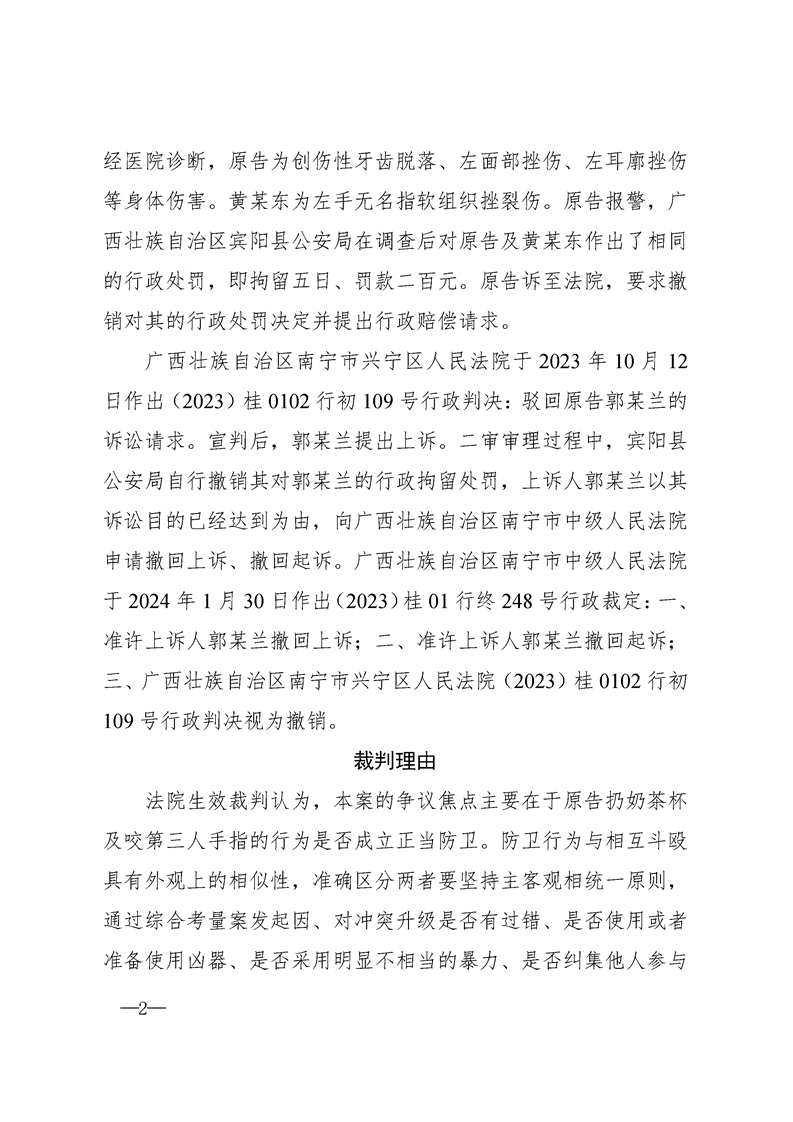 入库参考案例:治安处罚案件中“正当防卫”与“互殴”的区分