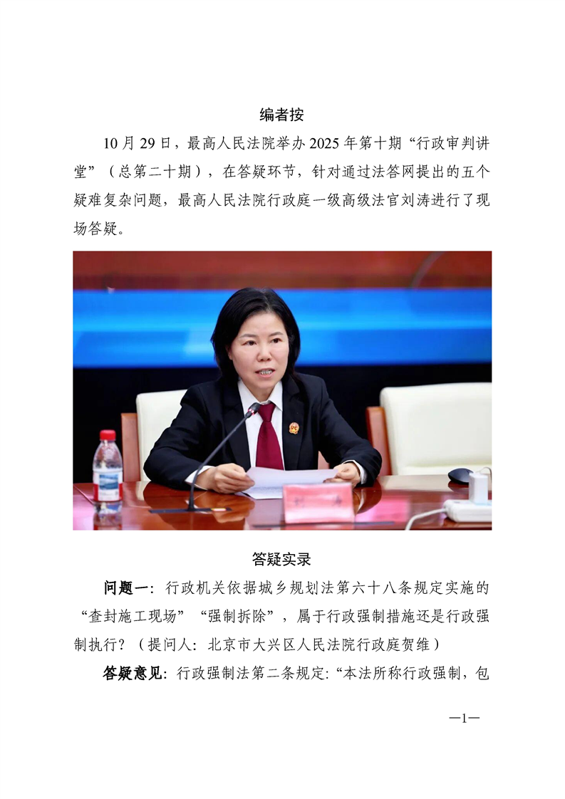 最高人民法院“行政审判堂”2025年第十期答疑实录
