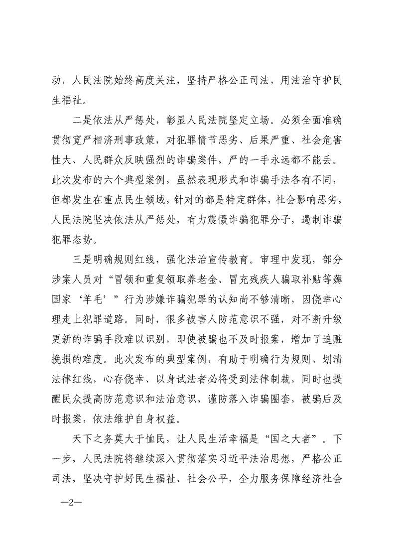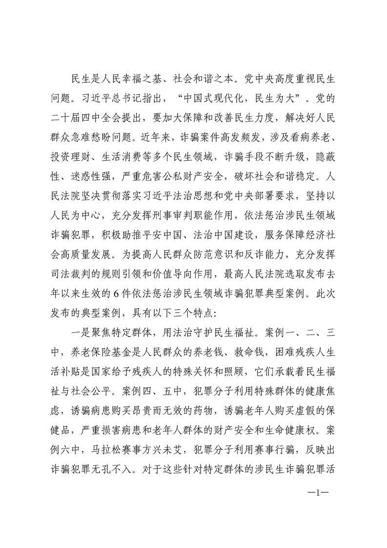最高人民法院发布依法惩治涉民生领域诈骗犯罪典型案例