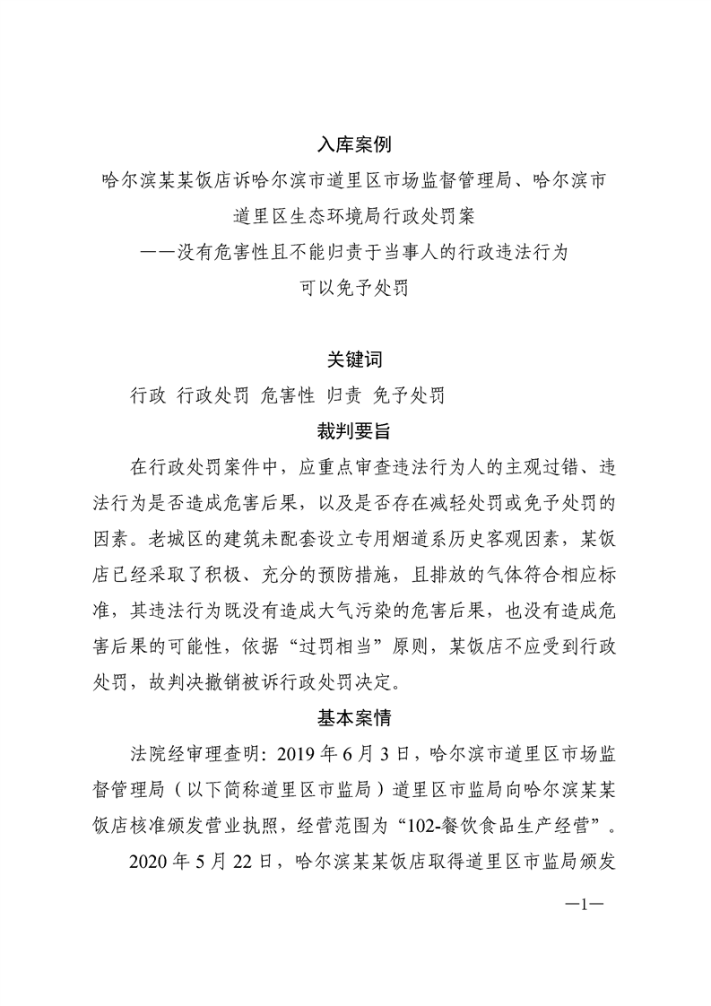 入库参考案例:没有危害性且不能归责于当事人的行政违法行为可以免予处罚
